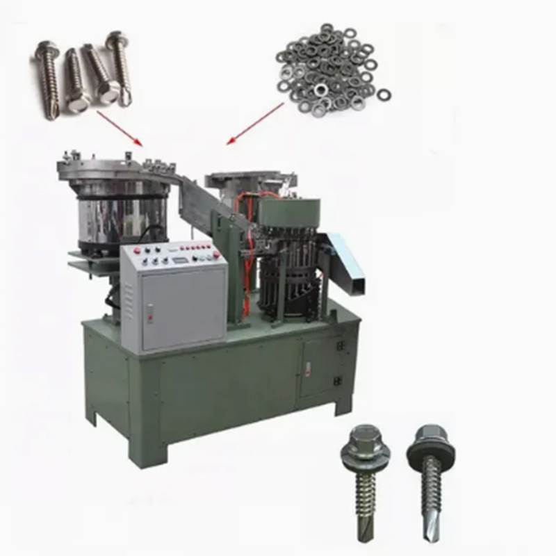 Машината за сглобяване на винтова шайба от въглеродна стомана получава винтове и шайби от отделни контейнери. Той може автоматично да постигне прецизно подравняване между винта и шайбата и да притисне стабилно шайбата в определената позиция на винта. Това устройство е специално проектирано да се справя с твърдостта на части от въглеродна стомана и няма да се износва бързо.