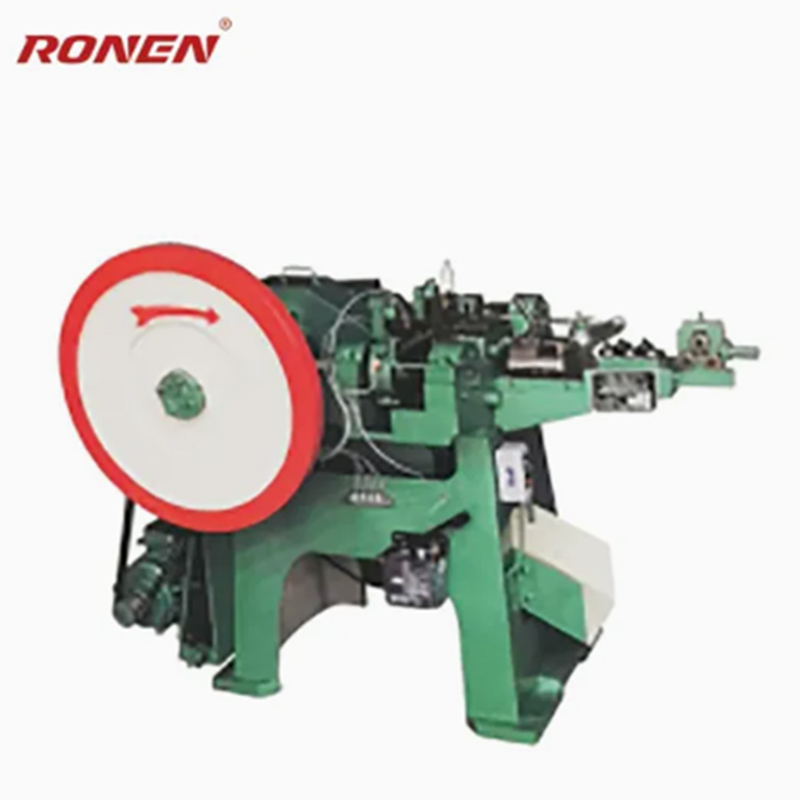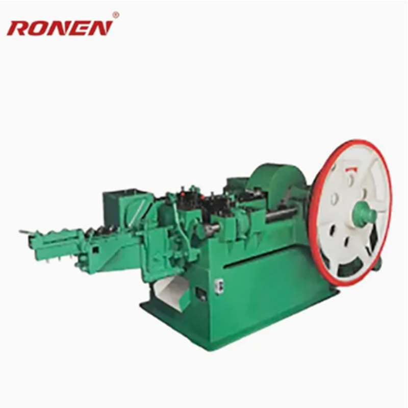 Устойчивата на вибрации машина за производство на пирони Ronen® с голям капацитет може да произвежда пирони в големи количества и работи гладко. Включва рязане на тел, оформяне и заточване на главите на ноктите, което елиминира необходимостта от сложни процедури. Просто поставете жицата, задайте дължината и тя ще работи стабилно.