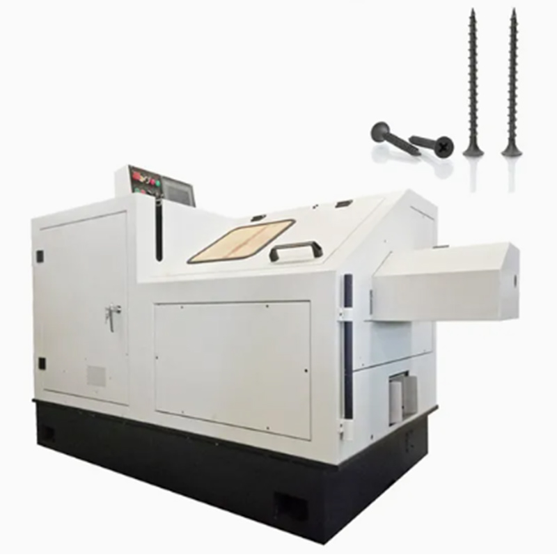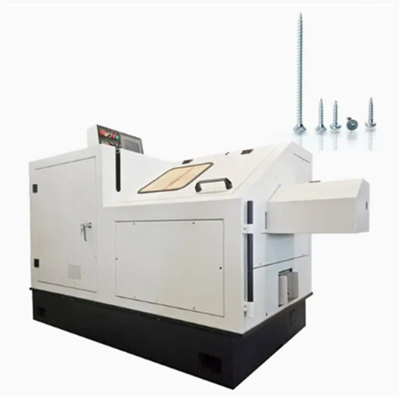 Машината за винтове от неръждаема стомана е специално проектирана за производство на винтове от неръждаема стомана. Първо, телта от неръждаема стомана се подава в машината, която след това се нарязва на желаната дължина. След това винтовата глава се натиска с помощта на мухъл, а нишките се навиват върху нея.